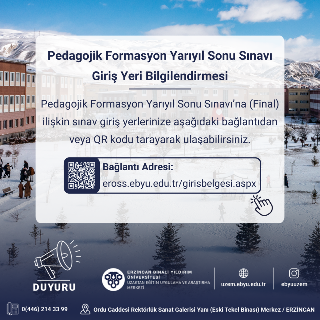 2025-2026 Güz Dönemi Pedagojik Formasyon Yarıyıl Sonu Sınavı Giriş Yeri Bilgilendirmesi