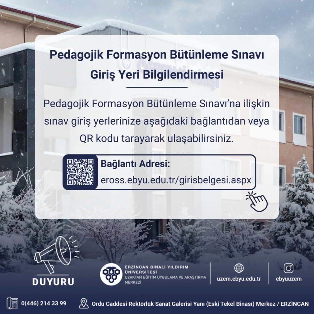 2025-2026 Güz Dönemi Pedagojik Formasyon Bütünleme Sınavı Giriş Yeri Bilgilendirmesi